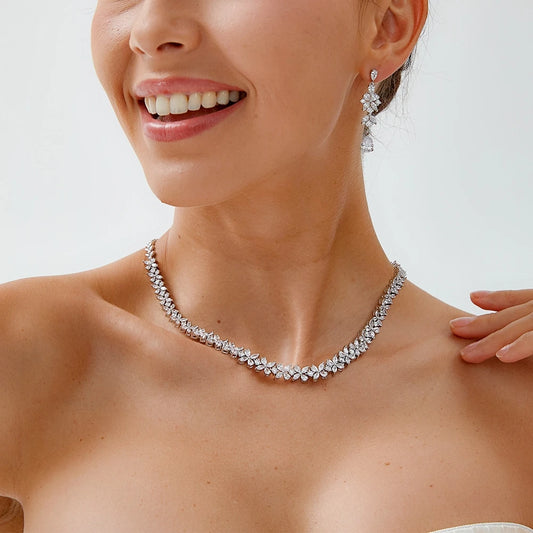 Elegant Round Zirconia Necklace Holiday Gift Simple Women's Jewelry Sets Bride Wedding Party Dress Accessories