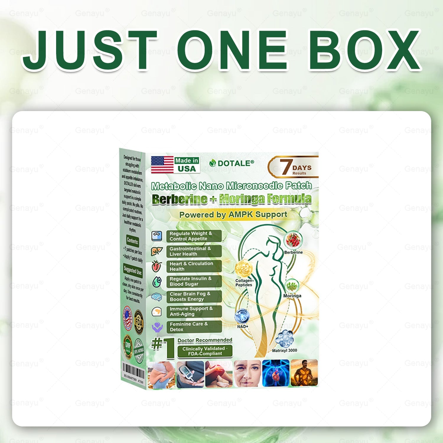 ✅ 𝑫𝑶𝑻𝑨𝑳𝑬® 𝑴𝒆𝒕𝒂𝒃𝒐𝒍𝒊𝒄 𝑵𝒂𝒏𝒐 𝑴𝒊𝒄𝒓𝒐𝒏𝒆𝒆𝒅𝒍𝒆 𝑷𝒂𝒕𝒄𝒉 breaking away from the burden of traditional injectable or oral weight-loss products, this advanced nano microneedle transdermal delivery system gently and steadily releases active ingredients for up to 8 hours. Core ingredients Moringa and Berberine work synergistically to support appetite management and lipid metabolism, making fat loss feel more natural and effortless—without extreme dieting or physical strain. At the same time, NAD⁺ supports cellular energy levels and skin firmness, helping maintain a healthy, well-toned appearance during body-weight changes. The overall formula is gentle and stable, offering a more comfortable experience for those seeking an effective, non-irritating, and non-injectable approach to weight management.